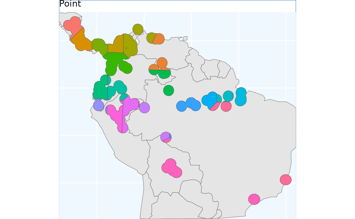 The geographic based samples (here Point, Equal Area, Opportunistic, and IBE) are quite similar. In my mind isolation by distance (IBD) show the biggest different, it makes the most sense by splitting sampling areas along naturally occurring patches of the species range.
